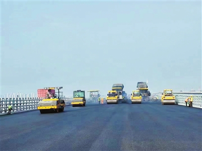 中秋国庆假期期间,国道204大沽河桥梁工程桥面上一片忙碌,施工人员坚守工作岗位,在提前完成主体施工的基础上,有序进行主线桥沥青铺筑施工,标志着项目迎来了通车前又一关键节点。