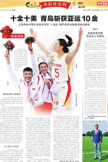 在刚刚过去的中秋国庆假期里,青岛选手依然在杭州亚运会奋力拼搏。随着10月5日晚青岛选手王思雨帮助中国女篮以74∶72险胜日本队夺得冠军后,青岛运动员在本届亚运会夺得的金牌数上升至10枚。