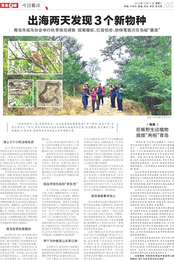 “短短的两天一夜,收获却很大。这次秋季海岛调查发现了多个物种,虽然辛苦,但我们很开心。”昨天,青岛市观鸟协会会长薛琳兴奋地告诉记者,经过整理,他们确定了短尾蝮蛇、红背伯劳、欧柳莺等为青岛或山东物种新记录。
