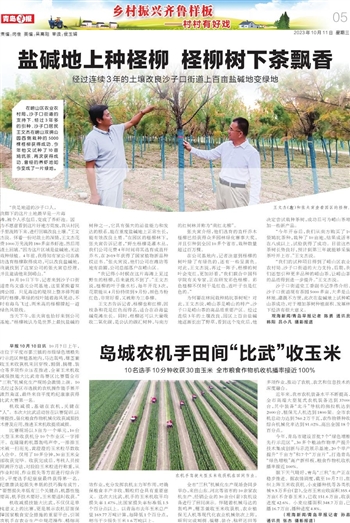 当天下午,张夫寅也恰好来到公司基地。“柽柳被认为是世界上最抗盐碱的树种之一,它具有强大的泌盐能力和发达的根系,能在重度盐碱地上正常生长,能有效改良土质。”在园区的柽柳林下,张夫寅告诉记者,“野生柽柳是灌木丛,我们公司花费4年时间将其选育成直杆乔木,在2019年获得了国家植物新品种权证书。”张夫寅说,他们公司在潍坊等地有苗圃,公司总部落户在崂山区。