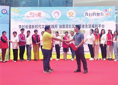 活动中,李村街道与油菜花社区志愿者生活福利平台双方代表签署战略合作协议。