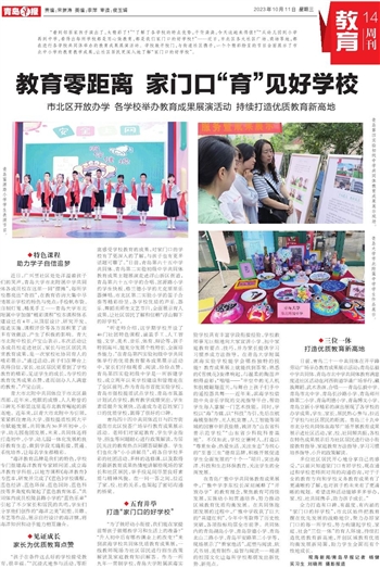 “看到邻居家孩子演出了,太精彩了!”“了解了各学校的特点优势,干货满满,今天这趟来得值!”“从幼儿园到小学再到中学,看得出每所学校都是用心做教育,都是我们家门口的好学校!”……近日,市北区各大社区广场、商场等地,都在进行各学校共同体举办的教育成果展演活动。学校敞开校门,与街道社区携手,一个个精彩纷呈的节目全面展示了市北中小学的教育教学成果,让社区居民更深入地了解“家门口的好学校”。