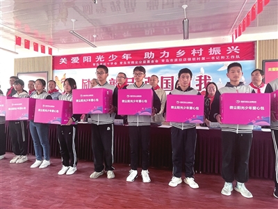 早报10月17日讯 10月17日,平度市114名“阳光少年”每人收到了一个价值600元的微尘爱心包,里面有他们喜欢的书包、文具、书籍等。当日,青岛市派驻旧店镇驻村第一书记和工作队联合青岛市红十字会、青岛微尘公益基金会、平度市红十字会对平度市旧店镇龙山中学、龙山小学等4所学校开展“关爱阳光少年 助力乡村振兴”爱心捐赠活动,传递爱心,助力乡村少年健康成长。