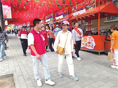 在中山路附近,志愿者向视障乘客介绍了老城区的变化:“这里的老里院都保留了下来,经过修葺焕然一新,而且引来了很多时尚业态,现在这里成了市民和游客们的打卡地。”