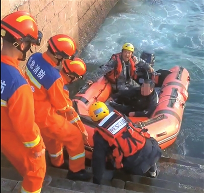 救援人员将落水男子转移至岸边。
