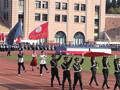 青岛电子学校、平度师范学校2023年秋季运动会开幕式。学校供图