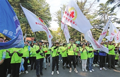 上午9时许,200多名爱心市民和红十字志愿者就聚集在太平山中央公园,领取健步行装备和爱心记录卡。参加活动的市民中,有器官移植康复者、遗体和器官捐献者家属、学生、红十字志愿者团队和青岛市各医疗单位代表,部分医疗单位还在现场为市民开展义诊活动。