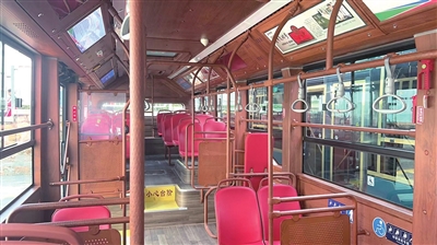 据青岛城运控股公交集团市北巴士第一分公司工作人员介绍,首批大辫子“复古铛铛车”共17部,本次试运行车辆有两部,试运行结束后,其余车辆将陆续投入运营。大辫子“复古铛铛车”车身10.5米,外观上在保留了传统公交车经典元素的同时,还延续了辨识度极高的大面积玻璃窗户,让乘客能够尽情欣赏沿途美景。车厢内,“复古铛铛车”以简约舒适为主,铺了木质复古地板,26张软质座椅以及超大空间的设计,也极大地满足了承载需求。