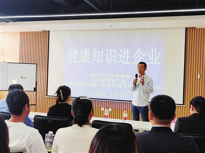 当天的“健康教育进企业”活动邀请岛城健康专家,通过开展健康讲座、义诊等形式,针对常见健康问题进行讲解和宣传。讲座中,青岛海慈医疗北院呼吸内科张琪医生讲解了甲型流感病毒感染预防知识。