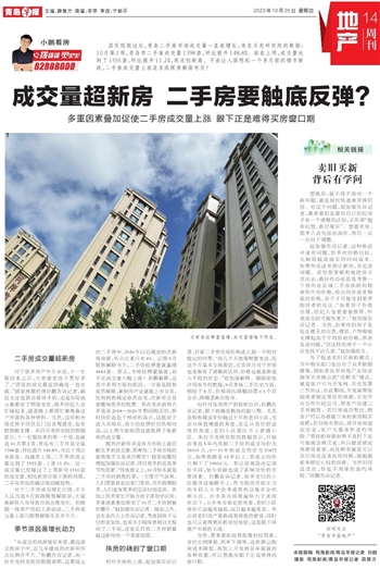 既然次新房并没有为市场上涨贡献太多的成交量,那青岛二手房市场的涨势推手又是来自哪里?链家商圈经理赵加强告诉记者,背后更多的还是季节性因素。“传统意义上,10月份本就是二手房的销售旺季,一方面天气凉爽,人们更愿意走出家门看房,另外假期较多,人们也有更多的空余时间选房。再加上很多家长开始为孩子谋划学区房,多重因素叠加带来了10月二手房销量的攀升。”赵加强告诉记者。除此之外,也有业内人士告诉记者,考虑到房子交付的安全性,也有不少购房者将目光投向了二手房,这也是目前二手房销量超过新房的一个重要原因。