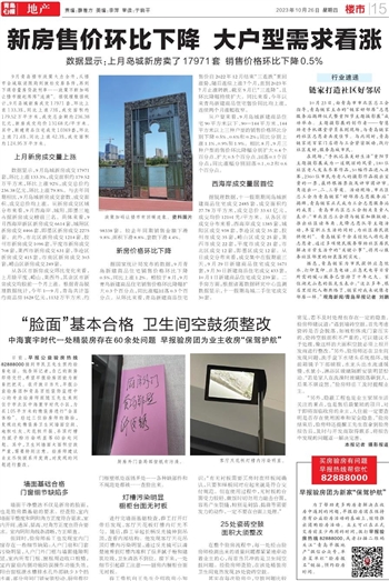 从户型来看,9月岛城新建商品住宅90平方米以下、90—144平方米、144平方米以上三种户型的销售价格环比分别下降0.5%、0.6%和0.2%;同比分别上涨1.1%、0.9%和1.9%。相比8月,9月三种户型的售价环比降幅分别扩大0.4个百分点、扩大0.5个百分点、回落0.1个百分点;同比涨幅分别回落0.1、0.2和0.6个百分点。
