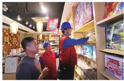 即墨区供电公司落实“办实事、解民忧”专项行动,组织党员服务队为即墨古城景区商户检查用电安全。