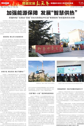 随着智慧供热技术的进步,即墨热电厂正在持续总结试点经验,立足行业实际,加强供热领域智能技术装备投入,加快建设和完善多元化的清洁能源保障体系,使整个智慧供热的经济效能和社会效益不断优化。同时,按照推进生态文明建设要求谋划“双碳”目标的实现路径,继续实施新能源和清洁能源供热,坚定不移地推进“双碳”任务落实,推进绿色能源转型和产业数字化、智能化型。本版撰稿摄影 观海新闻/青岛早报记者 康晓欢 通讯员 王鹏