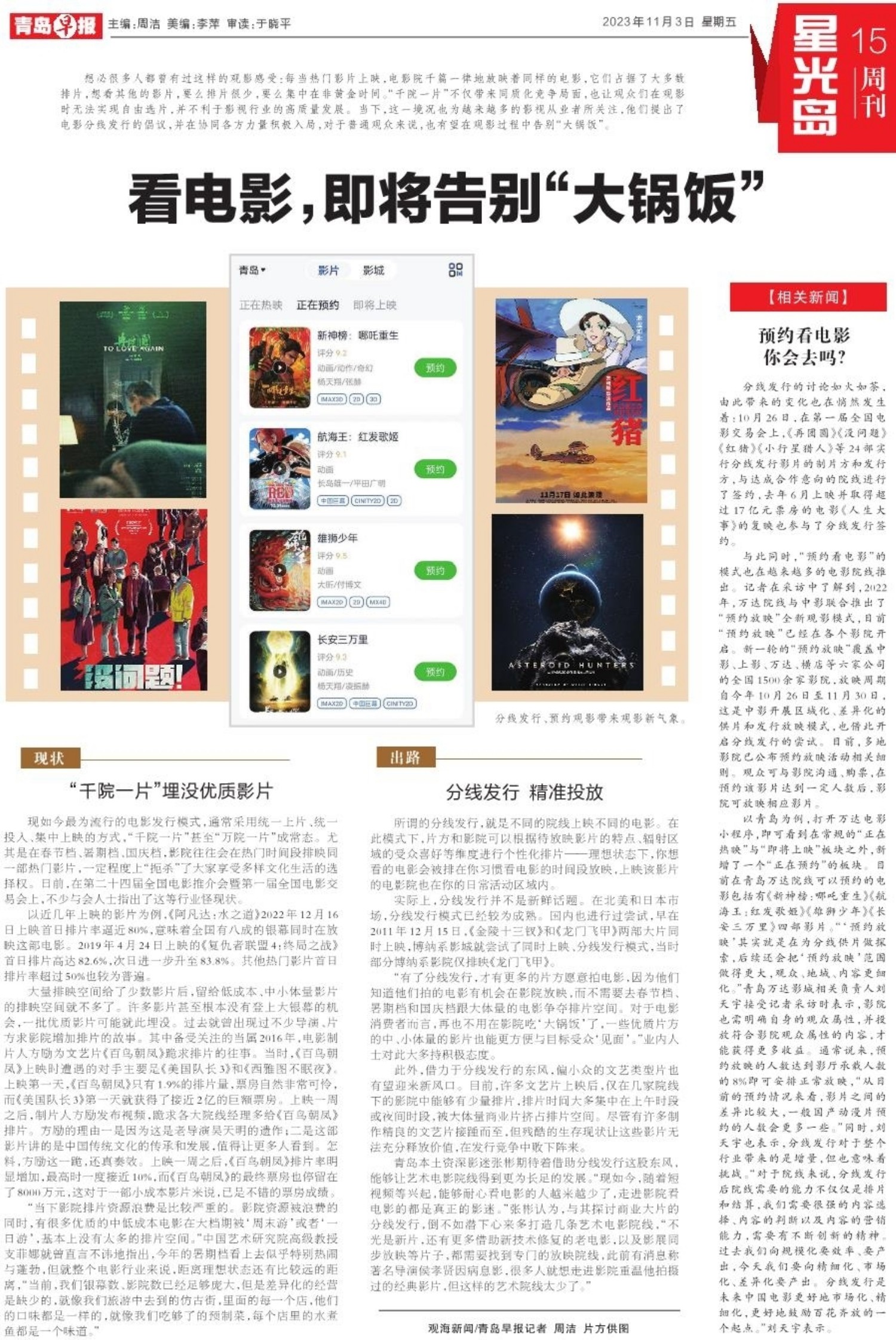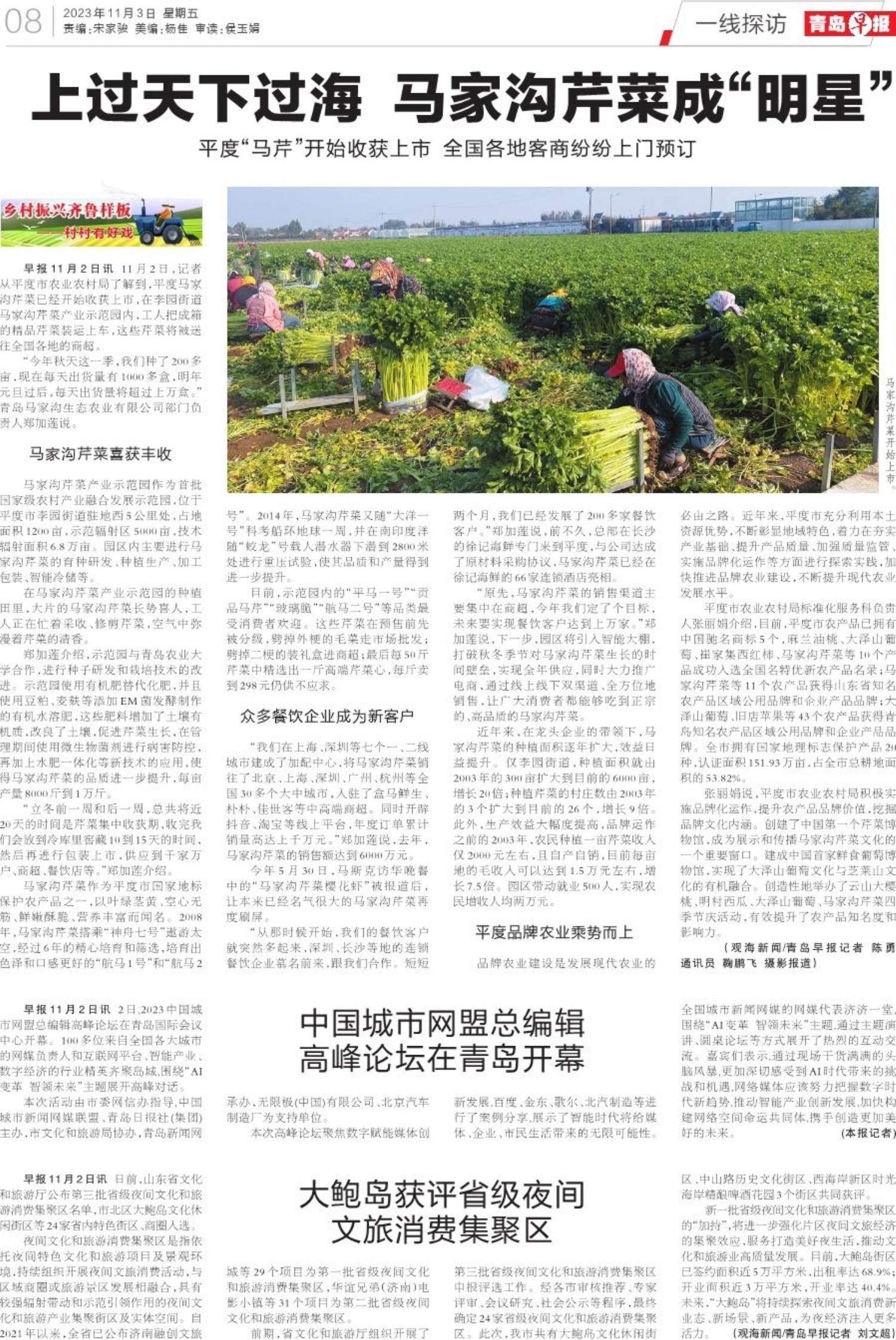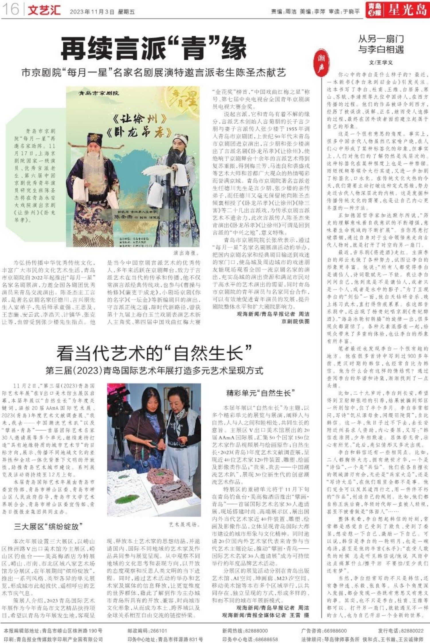 A01 头版 A02 要闻 A03 要闻 A04 划重点 A05 都市圈 A06 2023青岛山头公园艺术季——青岛市文艺精品扶持项目 A07 从车间走来——从工人到艺术家 A08 一线探访 A09 青岛面孔 A10 身边事 A11 警戒线 A12 荣军敬老 A13 财富汇 A14 理财 A15 星光岛 A16 文艺汇