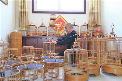 记者采访得知,大欧鸟笼是以江西和安徽出产的上好毛竹及梧桐木、檀木、牛骨为主要原料制作而成。鸟笼从原料加工到成品需经过选料、下料、制料、雕刻、组装等100多道工序,整个制作过程全部由手工完成。大欧鸟笼制作的核心技艺是鸟笼框圈的“加料蒸煮撤浆”。其蒸煮时间的长短、火候把握以及蒸煮的工序都十分考究,因而大欧鸟笼具有不干裂、不变形、坚固耐用的特性。
