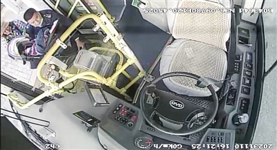 公交驾驶员帮乘客抬婴儿车。 视频监控截图