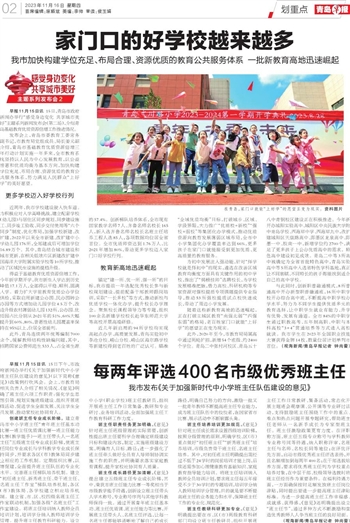 此外,青岛连续两年统筹编制7000余个,缓解教师结构性缺编问题,其中,招聘国家公费师范生533人,占全省生源的57.4%。创新梯队培养体系,全市现有国家教学名师7人、齐鲁名师名校长165人,新入选齐鲁名师名校长名班主任培养工程人选85人,各项数据均位居全省首位。全市优质师资达到1.76万人,比2021年增加80%,带动更多学校迈入家门口好学校行列。