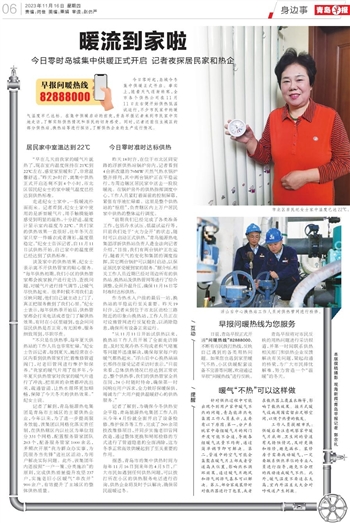 据悉,青岛市的集中供热时间为每年11月16日到来年的4月5日,广大市民如遇到任何供热问题,可以拨打所在小区的供热服务电话进行咨询,供热企业将及时予以解决,确保居民温暖过冬。