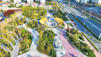 隋家屯公园结合既有场地梳理空间结构、丰富植物配置,形成层次分明、疏密有致的绿化效果,同时还设置了阳光草坪、智慧跑道、休闲广场、花海竹廊以及多种组团景观,让不同年龄段的市民都能找到适合自己的游憩空间。为缓解周边停车压力,有关部门还沿北京路施划了多个停车位,最大程度上实现便民、利民、惠民。