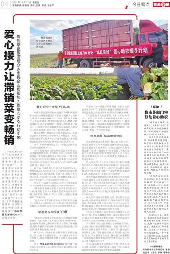 “从早报视频号上得知两位菜农有80多亩大白菜滞销的情况后,我们单位决定以实际行动帮助菜农。”青岛城运控股交运汽车总站一工作人员介绍,他们在公司发出倡议后,很多员工主动报名参与认购,公司成立“爱心助农”小组,启动“诚载美好 爱心助农”行动。