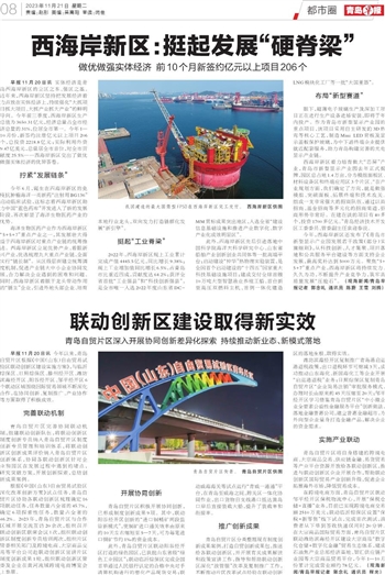 早报11月20日讯 实体经济是青岛西海岸新区的立区之本、强区之基。近年来,西海岸新区坚持把发展经济着力点放在实体经济上,持续强化“大抓项目抓大项目、大抓产业抓大产业”的鲜明导向。今年前三季度,西海岸新区生产总值为3650.31亿元,经济总量占全市经济总量的31%,位居全市第一。今年1—10月份,新签约注册亿元以上项目206个,总投资2218.8亿元;实际利用外资9.47亿美元,总量居全市首位,对全市贡献度25.5%……西海岸新区交出了做优做强实体经济的优异答卷。
