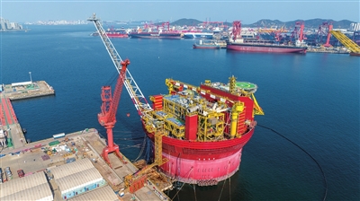 我国建造的最大圆筒型FPSO在西海岸新区完工交付。 西海岸新区供图