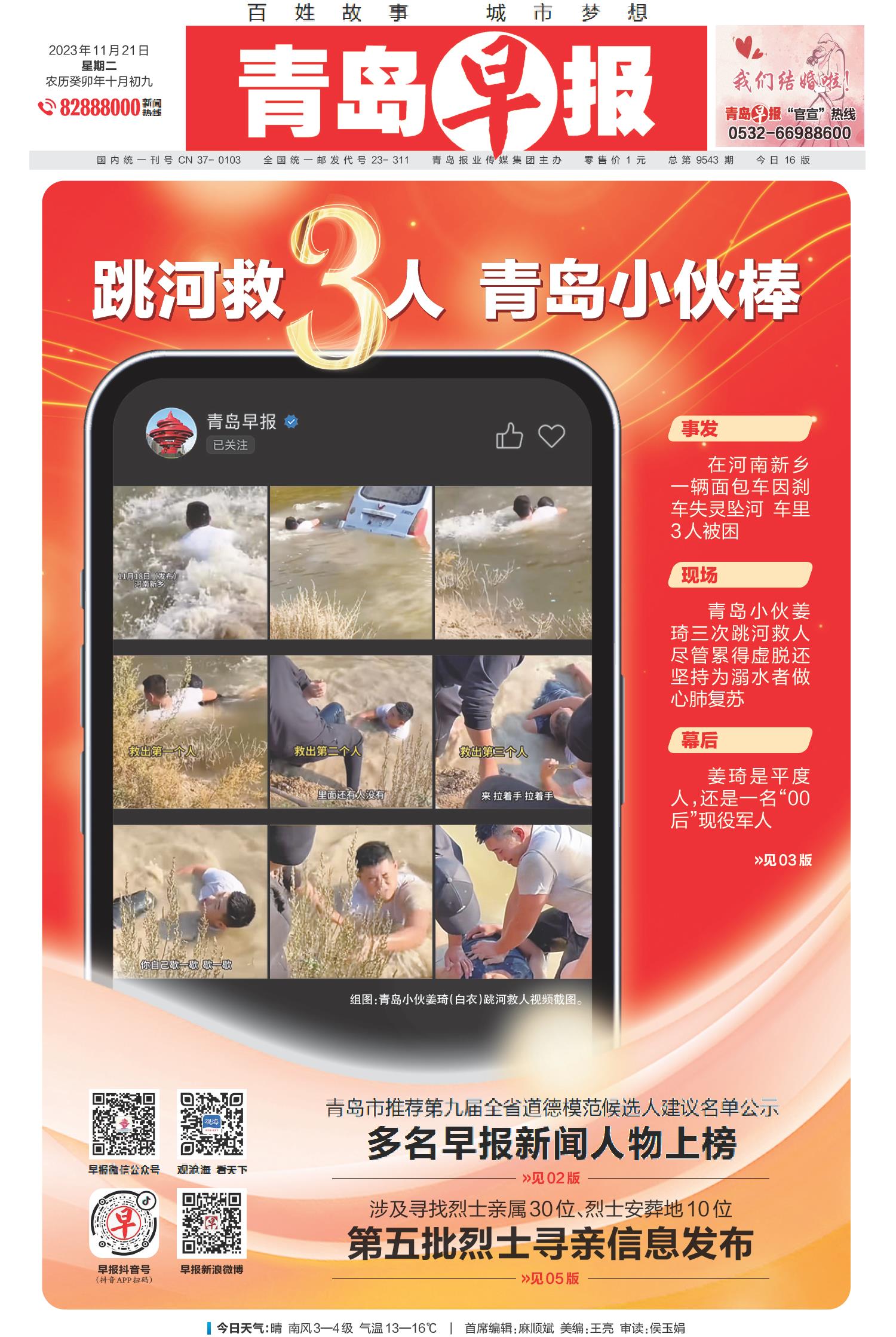 A01 头版 A02 大爱青岛 A03 大爱青岛 A04 今日看点 A05 爱军之岛 拥军之城 A06 划重点 A07 发布 A08 都市圈 A09 加快城市更新建设 提升市民生活品质 A10 身边事 A11 警戒线 A12 文体 A13 健康 A14 医声 A15 常青树 A16 风采