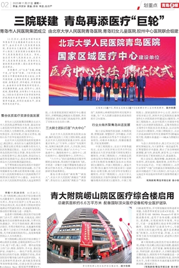 11月25日,在青岛市委市政府和青岛市卫生健康委员会的大力支持下,由北京大学人民医院青岛医院、青岛妇女儿童医院、青岛市胶州中心医院三家医院联合组建的青岛市人民医院集团正式成立。同时,由北京大学人民医院主办,北京大学人民医院青岛医院、青岛妇女儿童医院承办的第二届红岛医学论坛成功举办。