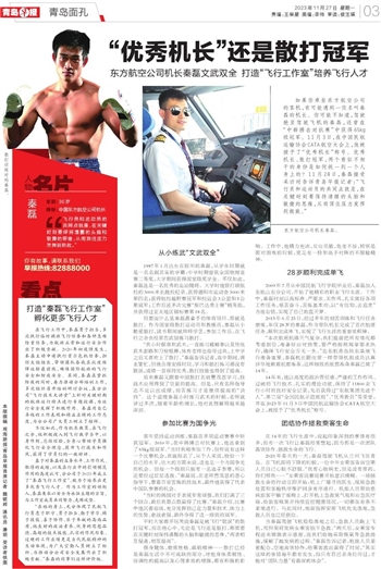 如果你乘坐东方航空公司的客机,有可能遇到一位名叫秦磊的机长。你可能不知道,驾驶舱里驾驶飞机的秦磊,还曾在“中韩搏击对抗赛”中获得65kg级冠军。11月3日,在中国民航运输协会CATA航空大会上,他被授予了“优秀机长”称号。优秀机长、散打冠军,两个看似不相干的身份是如何统一到一个人身上的?11月24日,秦磊接受采访时告诉青岛早报记者:“飞行员和运动员的共同点就是,在关键时刻要保持清醒的头脑和敏捷的思维,从而顶住压力发挥到极致。”