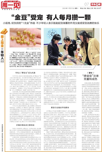 “存金更让人有安全感!金条买不起,金饰单价又高,金豆最合适,每个月攒一颗,积少成多。”记者现场走访时,26岁的尹女士说买金豆能起到强制储蓄的作用,“看到瓶里的金豆越来越多,内心很有满足感。”尹女士说,“攒金豆”是一种年轻人热衷的新型理财方式,根据自身资金条件,每周或每个月买1—3克,既可以起到强制储蓄的作用,又能体验购物的愉悦感和满足感。此外,用攒下的金豆豆、金瓜子来打首饰,比直接购买金首饰的费用更低。