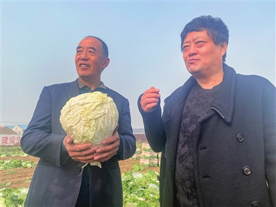 “这些大白菜都是可以生吃的,大家尝尝怎么样。”于荣英、冷垚和青岛百兴源土豆专业合作社负责人石祖元等人聚在一起品尝大白菜。“又甜又脆!”大家品尝后,情不自禁地伸出了大拇指。
