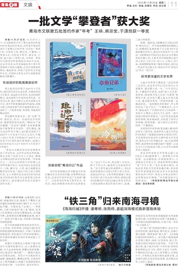 签约作家制度也在不断地为作家们解决实实在在的问题,传帮带的优良作风,在签约作家中形成了互助的“圈子”。小说类签约作家王胜军坦言,签约后,他在深感荣幸的同时也备感压力,“这8个月以来,我过得十分充实,除了工作之外,就是努力完成创作任务。”在王胜军递交的成绩单上,有《启航》《琅琊刻石历险记》等大部头作品。谈到这些作品,王胜军特别感谢了青岛文学同仁给予的支持与帮助,即将出版的《琅琊刻石历险记》就由青岛市作协主席铁流联合著名作家石钟山、连谏、三戒大师推荐。