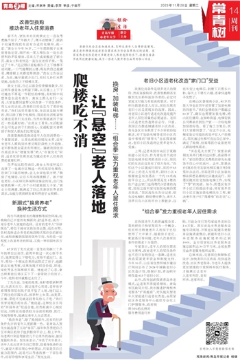 改善住房条件是很多老人的期待,然而直接购房、改善型换购甚至像贺先生那样旅居养老的,必定对家庭支付能力有较高的要求。对于相当数量的老人而言,居住在现有老旧小区是更现实的选择。因此,对老旧小区进行适老化改造是提升老年人居住质量的必要途径。老旧小区适老化改造势在必行。目前,我国正在推进城镇老旧小区改造,青岛各区市也积累了不少好的经验做法,对于加装电梯等老旧小区改造中难啃的“硬骨头”也在探索解决,老旧小区改造将让更多老年人受益。