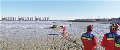 11月28日10时46分,唐岛湾湿地公园三号口附近有人陷入淤泥中,情况紧急。接警后,开发区消防救援大队立即调派薛家岛消防救援站救援人员前往救援。