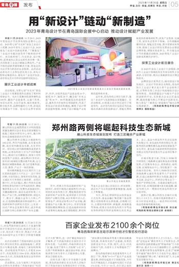 早报11月29日讯 11月29日,2023年青岛设计节在青岛国际会展中心启动。2023第七届“市长杯”青岛工业设计大奖赛、2023年青岛工业设计大会、2023青岛工业设计创新成果展、“工赋青岛”工业设计专题访谈等多个板块同步举行。来自政府部门、行业协会、设计机构、驻青高校以及企业的代表齐聚一堂,共同探索工业设计赋能品牌迭代、产业升级的创新灵感和解决方案,营造全民关注并参与的良好社会氛围。此次活动由青岛市工业和信息化局主办,青岛日报报业集团承办,青岛市工业设计协会、清华青岛艺术与科学创新研究院协办。