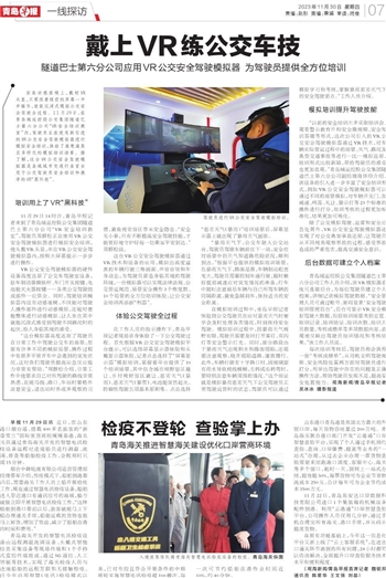 坐在动感座椅上,戴好VR头显,只需跟着眼前的屏幕一步步操作,就能沉浸式模拟公交安全驾驶全过程。11月29日,在青岛城运控股公交集团隧道巴士第六分公司“VR安全培训教室”内,驾驶员正在使用新引进的VR公交安全驾驶模拟器进行模拟安全培训,体验了高度逼真且多样化的模拟培训场景。据了解,这台VR公交安全驾驶模拟器是岛城城市交通行业首台用于公交驾驶员安全培训和教学的VR“黑科技”。
