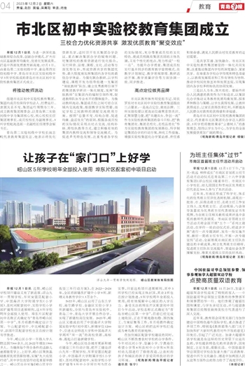 2022年,崂山区启用了山东头学校、海尔路学校、金融区实验小学3所新建校,分别与青岛市实验初中、青岛二中、青岛大学开展合作办学,实现了新建校高位发展。2023年,崂山区又建成启用了中国海洋大学附属实验学校(初中部),新增学位1200个,引进北京师范大学和中国海洋大学两所“双一流”的高校资源,高标准、高起点打造新建学校。