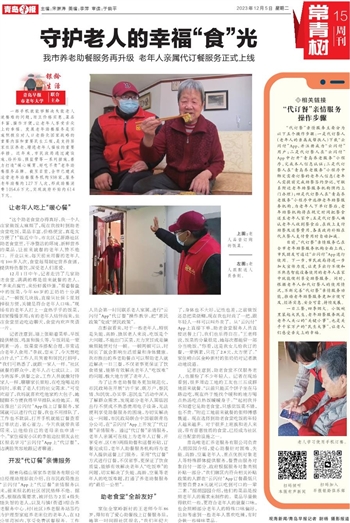 为了让养老助餐服务更加规范化,市民政局在开展“访千家、联万户,察民情、知民忧,办实事、惠民生”活动中深入了解群众需求,发现部分老年人面临因出行不便或不熟悉使用电子设备,无法便利享受助餐服务的困境,为切实解决这一问题,市民政局联合中国银联青岛分公司,在“云闪付”App上开发了“代订餐”亲情服务。通过“代订餐”亲情服务,老年人亲属可在线上为老年人订餐,并享受市、区(市)两级助餐和送餐补贴,订餐完成后,老年人助餐服务机构将为老年人提供送餐上门服务。采用“代订餐”方式进行订餐,不仅省事,更保证了饮食质量,能够有效解决老年人“吃饭难”的问题,切实解决了失能、高龄、空巢等老年人的吃饭难题,打通了养老助餐服务的“最后一公里”。