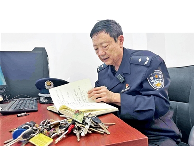 15年来,马怀龙的手上已陆续积攒了46把社区居民家的钥匙,拎起这串沉甸甸的钥匙,金属碰撞的叮咚声,诉说着每一把钥匙背后的故事。“马叔叔”“马爸爸”“马老弟”“马大哥”“老马”“马警官”……不同年龄和身份的每把钥匙的主人,都对马怀龙有着不同的亲切称谓。马怀龙是众多居民最信赖的人、最可靠的依托,这不仅仅来源于那身庄严的警服,更是他多年来给予居民的真心付出和温暖守护,让居民对他从信任逐渐升级为依托,“依托”其实也正是居民对马怀龙的最高礼赞。