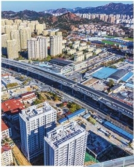 12月8日,在郑州市东三环附近,列车行驶在济郑高速铁路上。新华社发