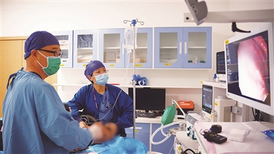 上午的门诊刚刚结束,王智峰匆匆吃了几口午饭便出现在了内镜中心。“下午还有几名患者约了做胃肠镜。”王智峰告诉记者,与以往用手术解决问题的方式相比,用内镜通过人体的天然腔道深入人体内部进行手术,可保持消化道完整,创伤小、恢复快,缩短住院时间,起到“四两拨千斤”的效果。