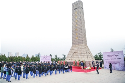 早报12月13日讯 12月13日是第十个国家公祭日。为深切缅怀在中国人民抗日战争中英勇献身的英烈和所有为中国人民抗日战争胜利作出贡献的人们,悼念南京大屠杀死难者和所有在日本帝国主义侵华战争期间惨遭杀戮的死难同胞,深入开展爱国主义和国防教育,由中共青岛市委宣传部、青岛市退役军人事务局、青岛市警备区政治工作处主办,崂山区委、区政府承办的“勿忘国耻、圆梦中华”青岛市第十个国家公祭日纪念活动于12月13日上午在崂山区烈士陵园举行,各界代表200余人参加。