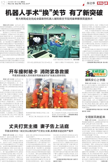 事后经了解,事故是因为雪天路滑,方向盘失灵引起的,幸运的是伤者腿部骨折,没有生命危险。 (观海新闻/青岛早报记者 邹忠昊 摄影报道)