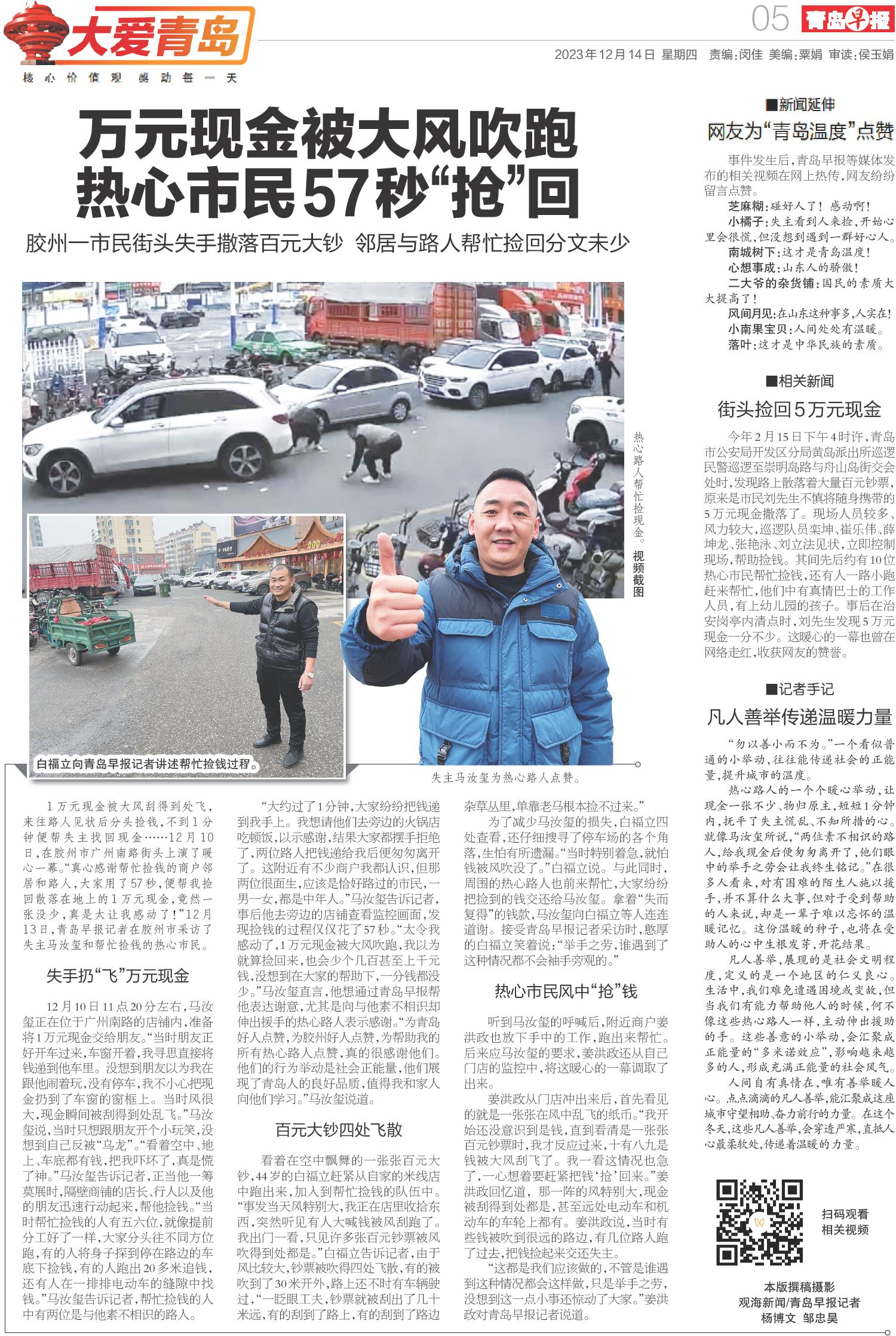 万元现金被大风吹跑 热心市民57秒“抢”回