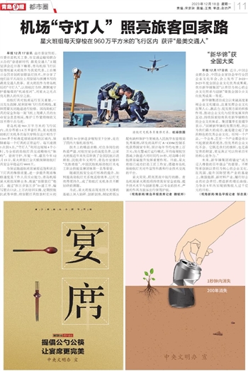 早报12月17日讯 由市委宣传部、市委市直机关工委、市交通运输局联合主办的“奋进新时代 最美交通人”主题宣讲会近日落下帷幕,青岛机场飞行区管理部星火班组作为获奖代表,上台展示全国首创的盲眼装灯技术,并分享了他们在平凡岗位上用坚韧与拼搏书写的最美交通人故事。星火班组作为青岛机场的“守灯人”,以助航灯为伴,默默地守护着璀璨的“机场星河”,用星火之光点亮无数人的天空之旅。
