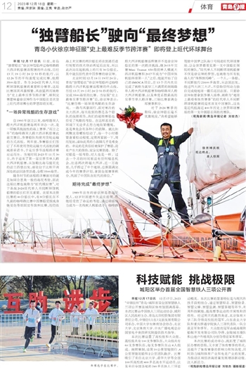 北京时间12月14日19时24分,青岛“独臂船长”徐京坤驾船冲过咖啡路跨大西洋帆船赛返程赛的终点线,历经13天19小时24分51秒的航行,完成3500海里的比赛。当征服“史上最难反季节跨洋赛”后,徐京坤表示:“比赛仿佛一场异常残酷的生存游戏。一路与风暴同行,面对寒冷的北大西洋,每天收到的都是各个船队的战损报告,我们的超级赛船也经受了残酷的考验。在这样恶劣的环境下无论多么努力地收紧缰绳,还是难免会有各种小的故障。就比如两颗龙骨螺栓松动了,每一个小时都要查看松动程度,定期再紧固一下,周而复始,诸如此类的小故障几乎是难免的。幸运的是我很好地保护了赛船,没有产生大的损伤,安全完赛到港。除了对船是一场考验,对人也是一样。过去一个月的时间里没有任何喘息机会,往返两次跨越大西洋,近一万海里,几乎跨过了半个地球,总算圆满完成今年的赛季计划,拿到全部赛事积分,巩固了中国队在旺代的排位。”