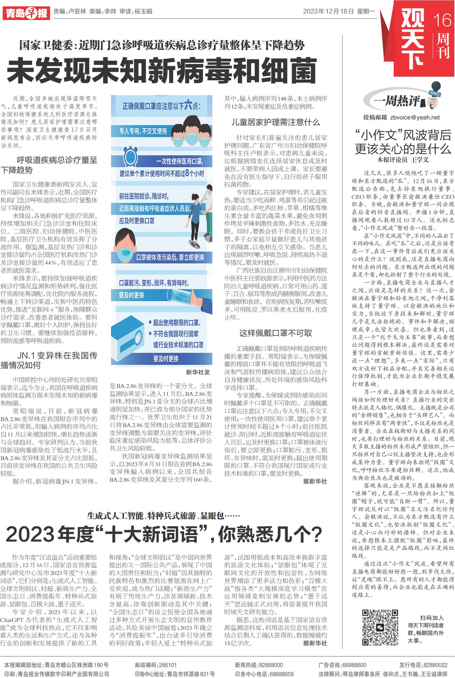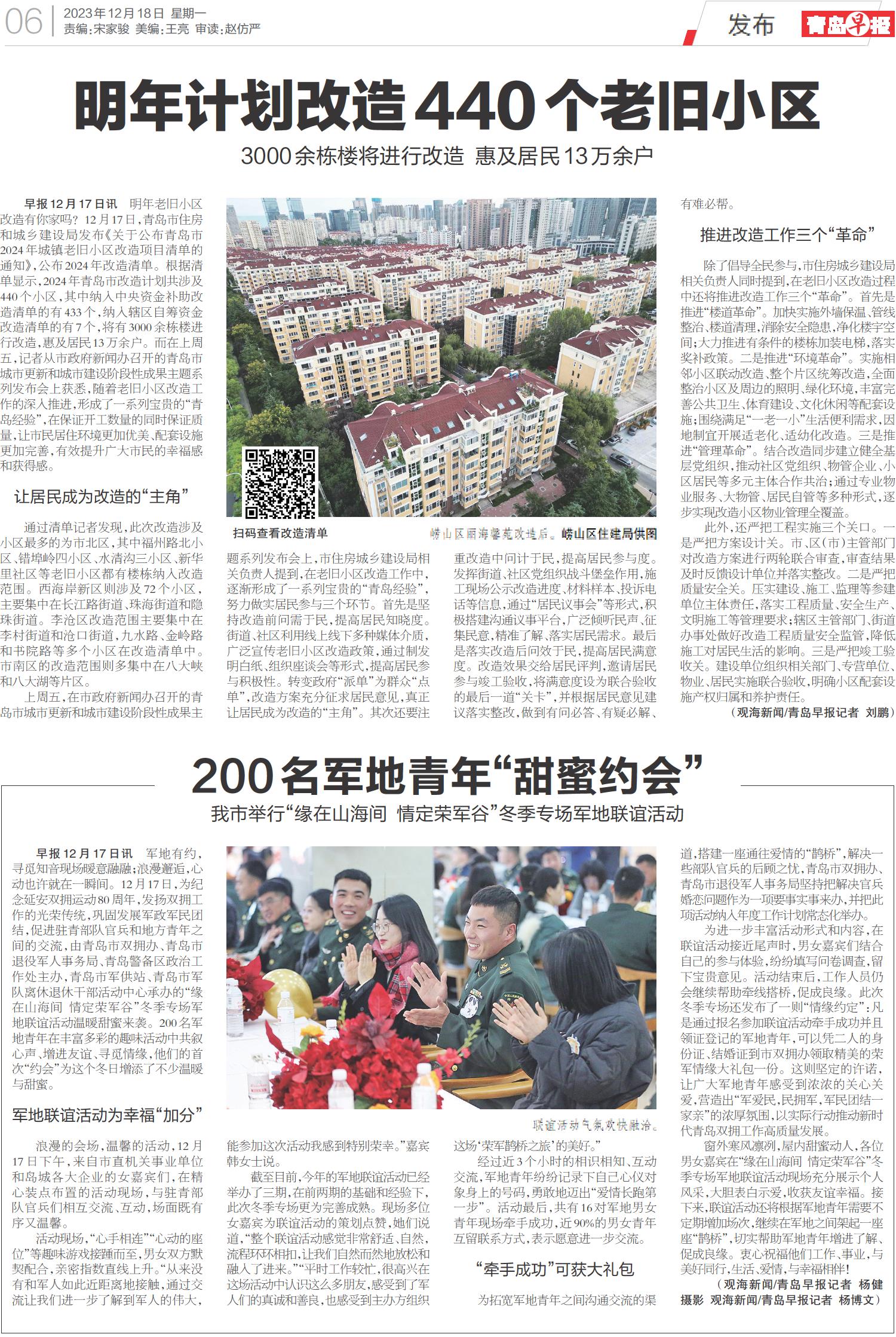 A01 头版 A02 划重点 A04 今日看点 A06 发布 A07 身边事 A08 周一见 A10 周一见 A11 都市圈 A12 体育 A13 文娱 A14 瞰青岛 A15 新气象 A16 观天下