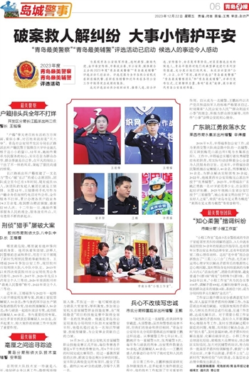 为展现青岛公安铁军形象,选树典型、激励先进,由市委宣传部、市委政法委、市公安局、媒体联合主办的2023年度“青岛最美警察”“青岛最美辅警”评选活动已经启动。评选范围为全市各级公安机关在职在编民警、在职在岗辅警和近年来在各项公安工作中取得突出成绩的集体。