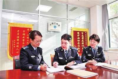“小程工作室”是由3名女警组成的专注于家庭邻里类纠纷调解的团队,3人中既有基层经验30余年的原派出所指导员,也有常年从事治安业务的法律专家,还有年轻的国家二级心理咨询师。这组“老中青”组合创新推出了“三柔三心三合”工作法,尤其善于运用心理学知识解决矛盾背后的根源性心态心理问题,及时帮助身处纠纷旋涡的当事人从内心“活血化瘀”,消除负面情绪,避免普通个(群)体“病变”为特殊个(群)体。自2022年以来,“小程工作室”共为民办实事116件,调解矛盾69起,化解纠纷事件21起,收到群众送来的锦旗4面,表扬信7封,成为分局纠纷多元化解的“金名片”。