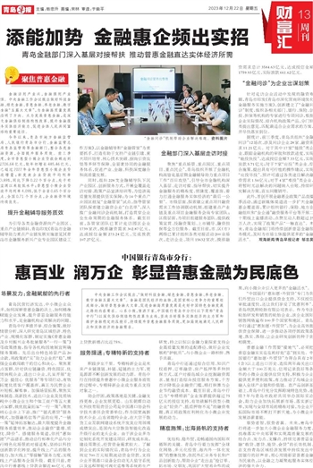 今年以来,青岛市地方金融监管局、人民银行青岛市分行、金融监管总局青岛监管局等金融部门,整合各类金融资源,全面提升服务质效。前三季度,全市普惠型小微企业贷款余额达到2726.64亿元,较年初增长485.46亿元,已超过2022年全年普惠型小微企业贷款增量;新发放企业贷款平均利率3.89%,同比下降0.22个百分点,处于有监测以来较低水平;普惠型小微企业贷款平均利率4.09%,低于全省0.65个百分点、全国0.71个百分点,企业融资环境持续优化。
